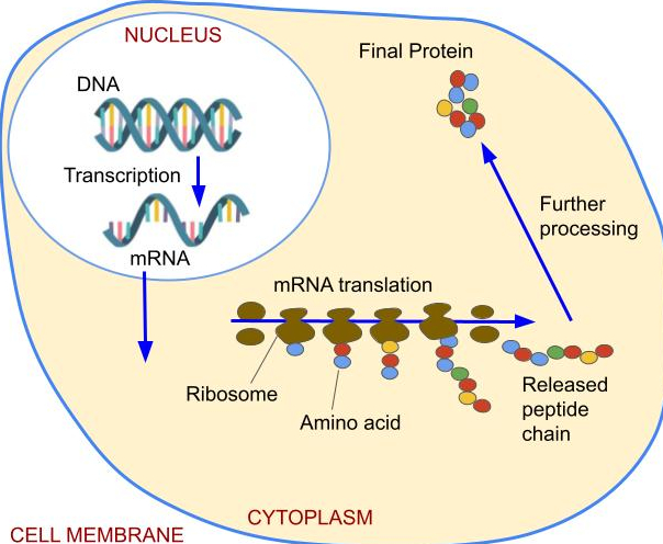 성숙한 mRNA는 세포질로 운반되어 리보솜에 결합합니다. 리보솜은 mRNA의 염기 서열을 읽어 아미노산을 결합하여 폴리펩타이드 사슬을 형성합니다. 이 과정에서 mRNA의 염기 서열은 아미노산의 순서를 결정짓는 중요한 역할을 합니다.